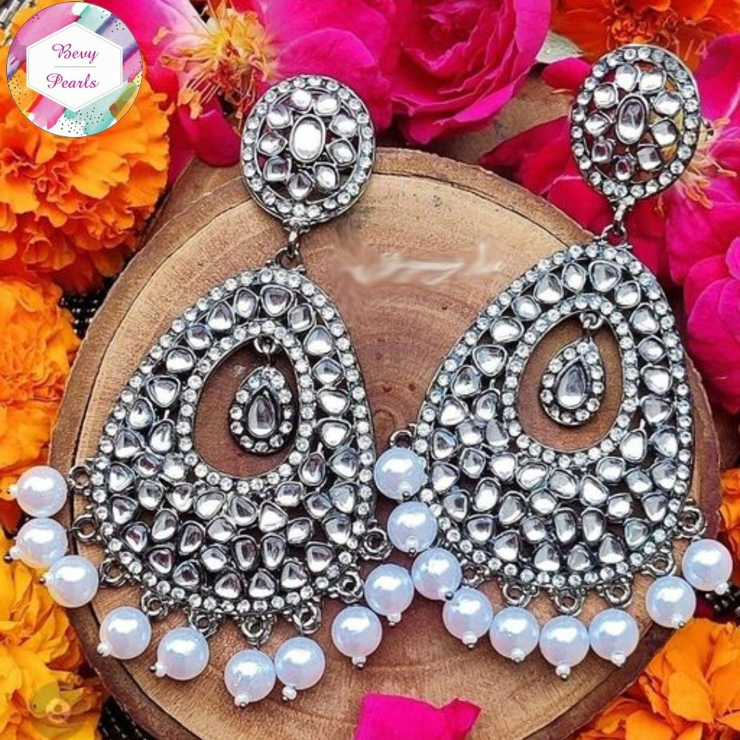 The oxidized black gun metal polish adds a contemporary edge, making this pair an ideal accessory for festive wear, weddings, or elevated everyday outfits. Whether paired with ethnic lehengas or fusion kurtas, these earrings are sure to turn heads.