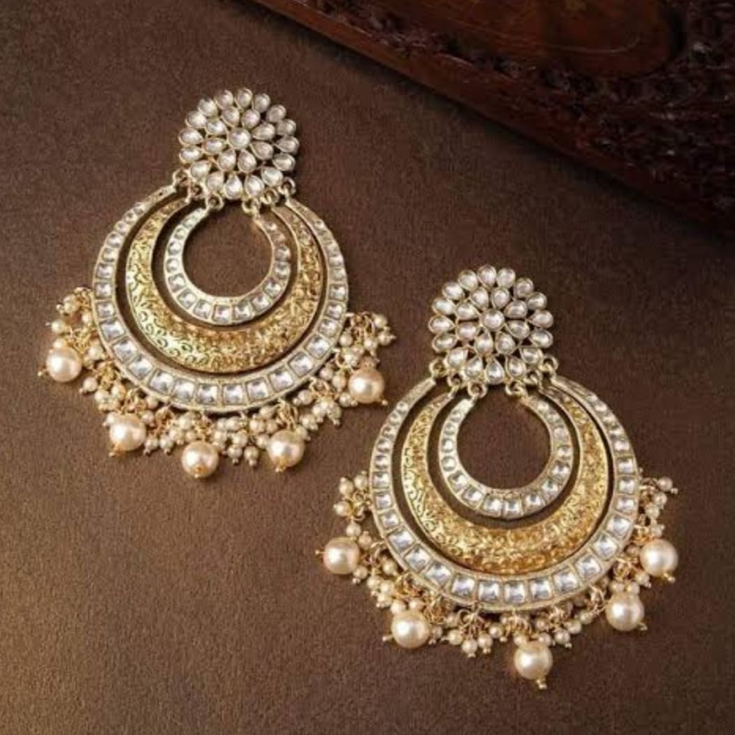The signature Chandbali design adds classic charm, while the lustrous kundan detailing reflects a regal touch. Lightweight and easy to wear, these earrings balance traditional craftsmanship with modern elegance. Whether paired with a saree, lehenga, or anarkali, these gold plated earrings for women are sure to draw compliments.